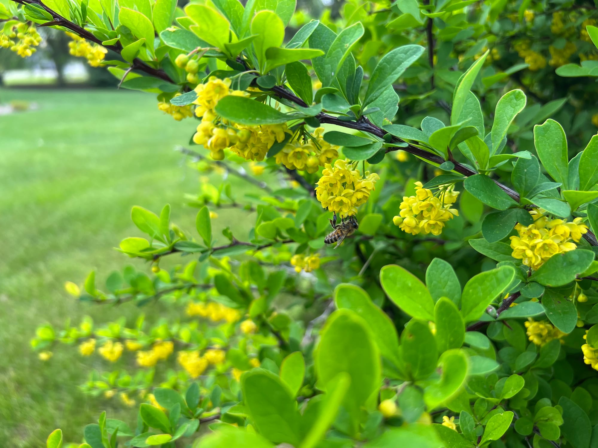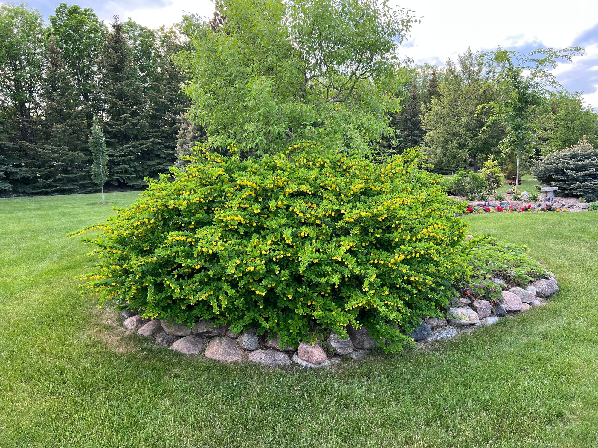 Emerald Carousel Barberry is another great shrub with season-long interest and is packed with yellow flowers in the spring.