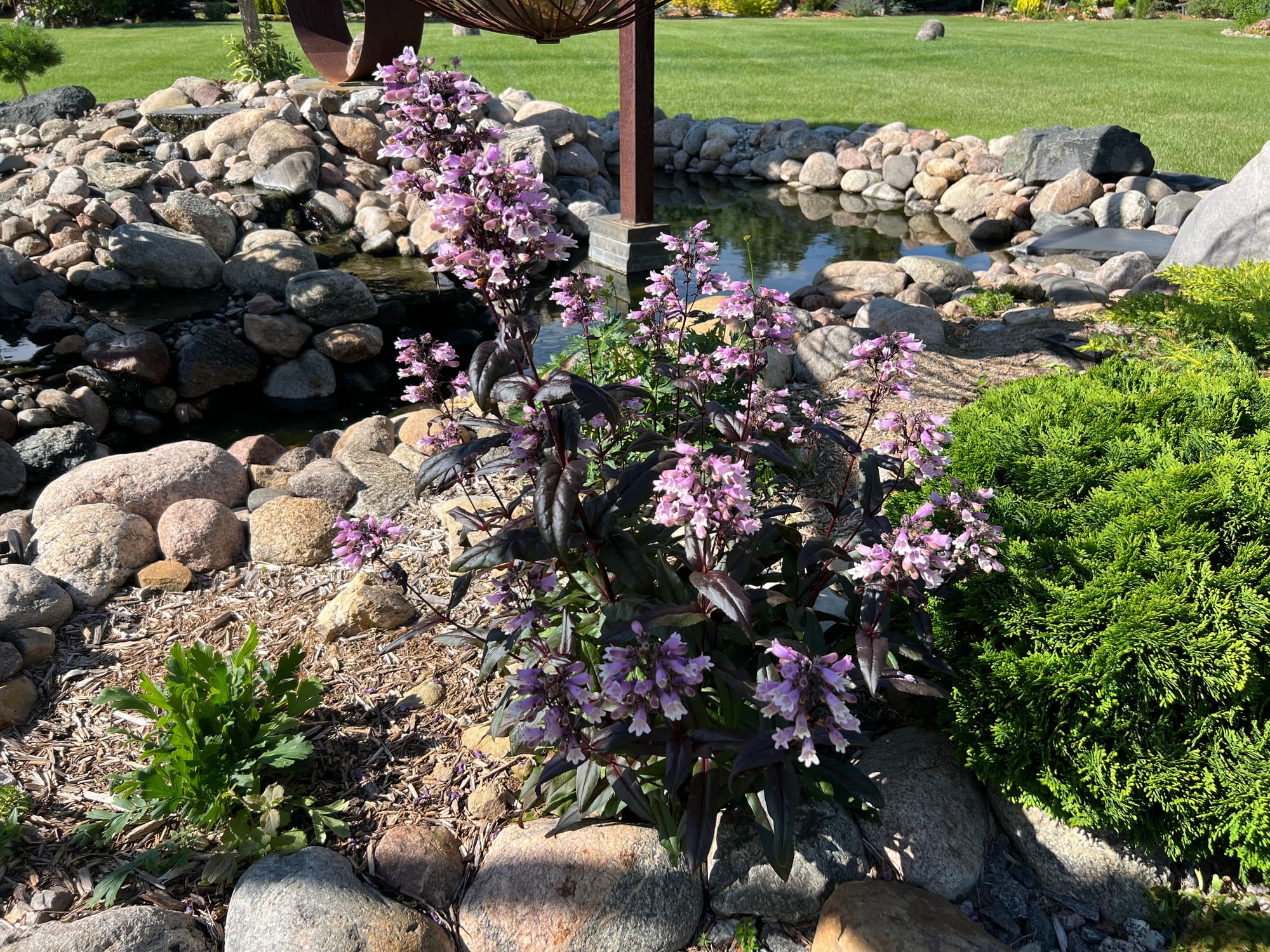 You’ll notice our beardtongue (now several, new little beardtongues) is located next to our water feature. Here again, I installed this in our landscape, thinking we would enjoy it mostly for the sound of water trickling. But it has become more enjoyable to watch the birds, bees, butterflies, dragonflies, and more frequently in this area, from spring through fall.