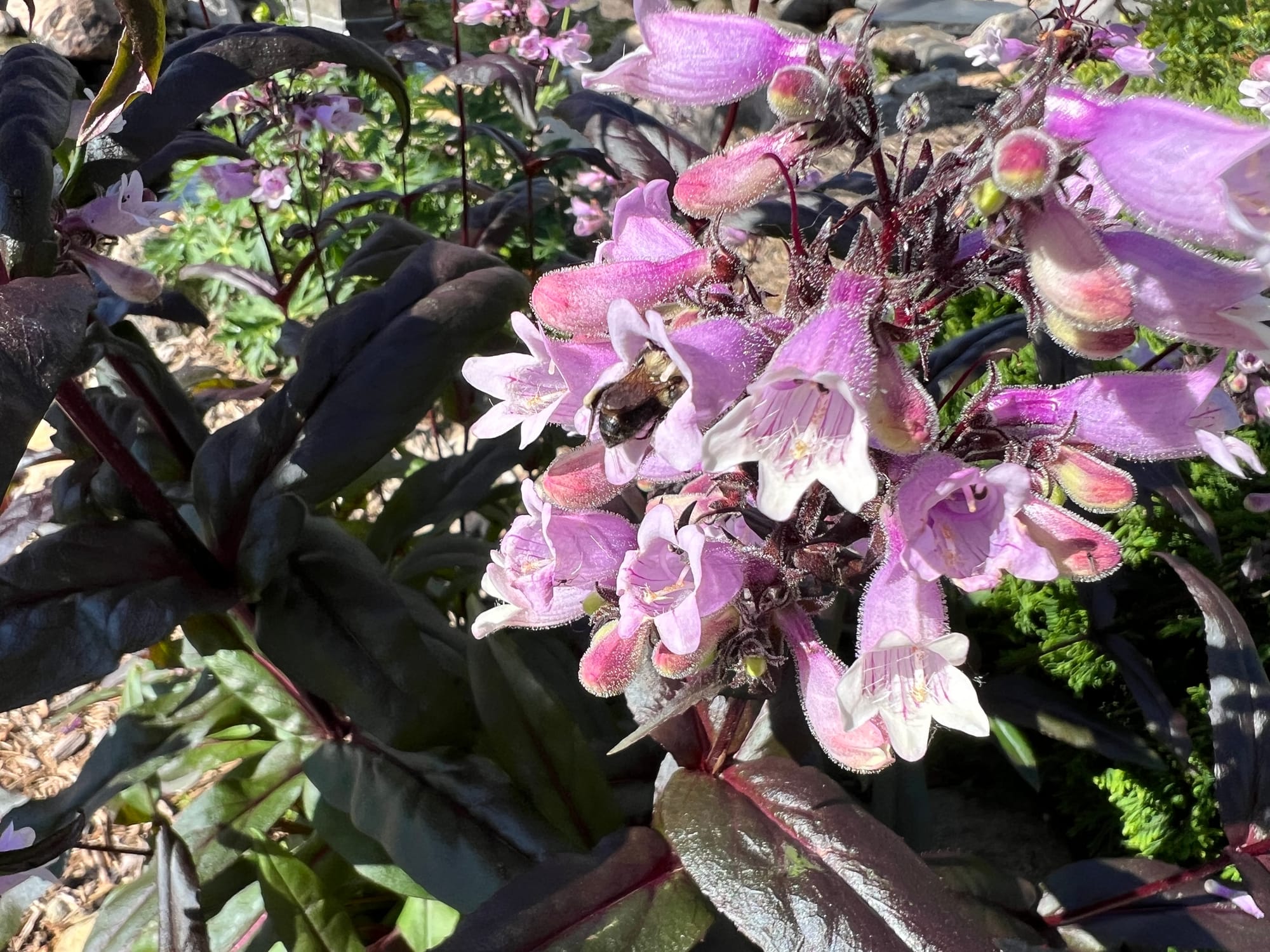 It’s fun to watch the Bumble Bees work their way in and out of this tubular flower on this Dakota Burgundy Beardtongue. The plant is loaded with light-pink flowers that open from late June through early July, complemented by deep burgundy leaf color. Our main plant died last winter, but many surrounding smaller plants are coming back from seed. Gardens are always changing.