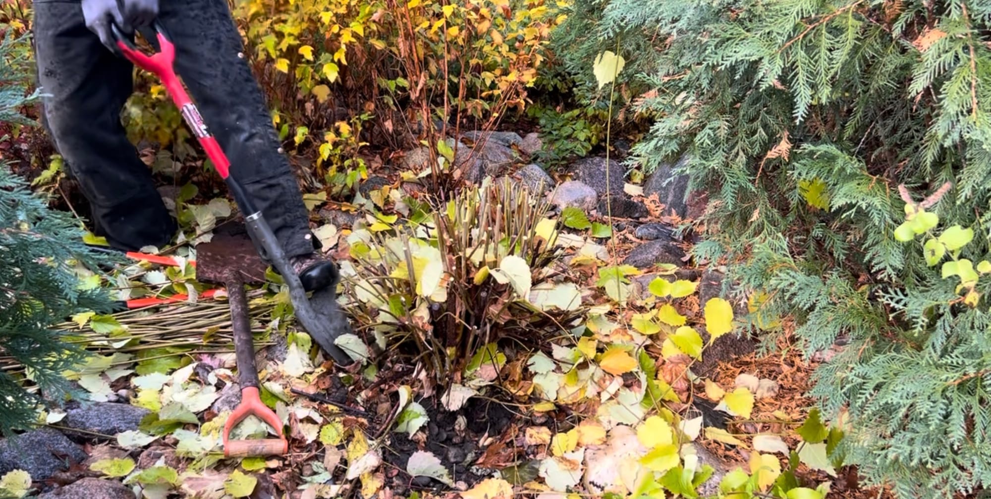 So when late fall came around, I cut it back and transplanted it into its new bed. For transplanting projects, I highly recommend a sawtooth shovel like the one shown below. This is the Radius brand and it is also great for breaking into hard compact soils.