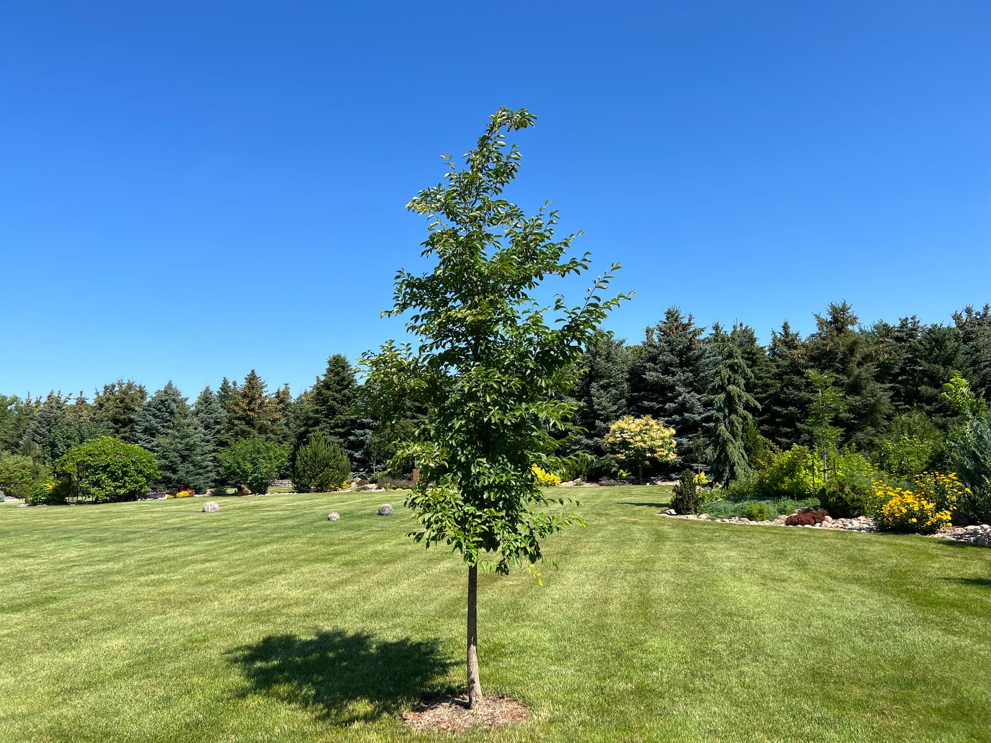 By the way, the tree planted here, now included in this bed, is one of my favorites. It’s a Northern Empress Japanese Elm introduced by North Dakota State University. It’s a small to medium-sized elm that has excellent fall color.