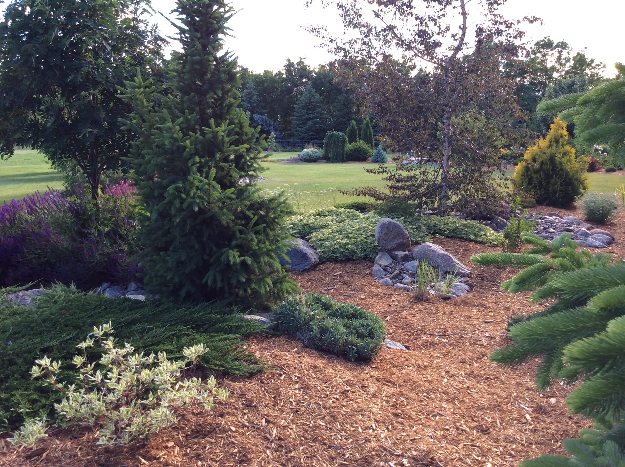 Start by identifying what type of plants you like. Factor in size, color, and winter interest characteristics: it is very easy to over-plant a bed, so make sure you look at the mature size of each plant and allow for space accordingly. I am comfortable with certain plants blending together over time, especially herbaceous flowering perennials. But conifer evergreens shaded by a shrub planted too close, for example, will usually lose their needles from lack of sun. There are so many concepts, styles, and combinations regarding plant design that we must save that for another article. Suffice it to say plants are what "make" the bed. Utilize your local garden center and clubs for valuable advice and information. Drive your neighborhood, check out what appeals to you, and duplicate your favorite finds.
