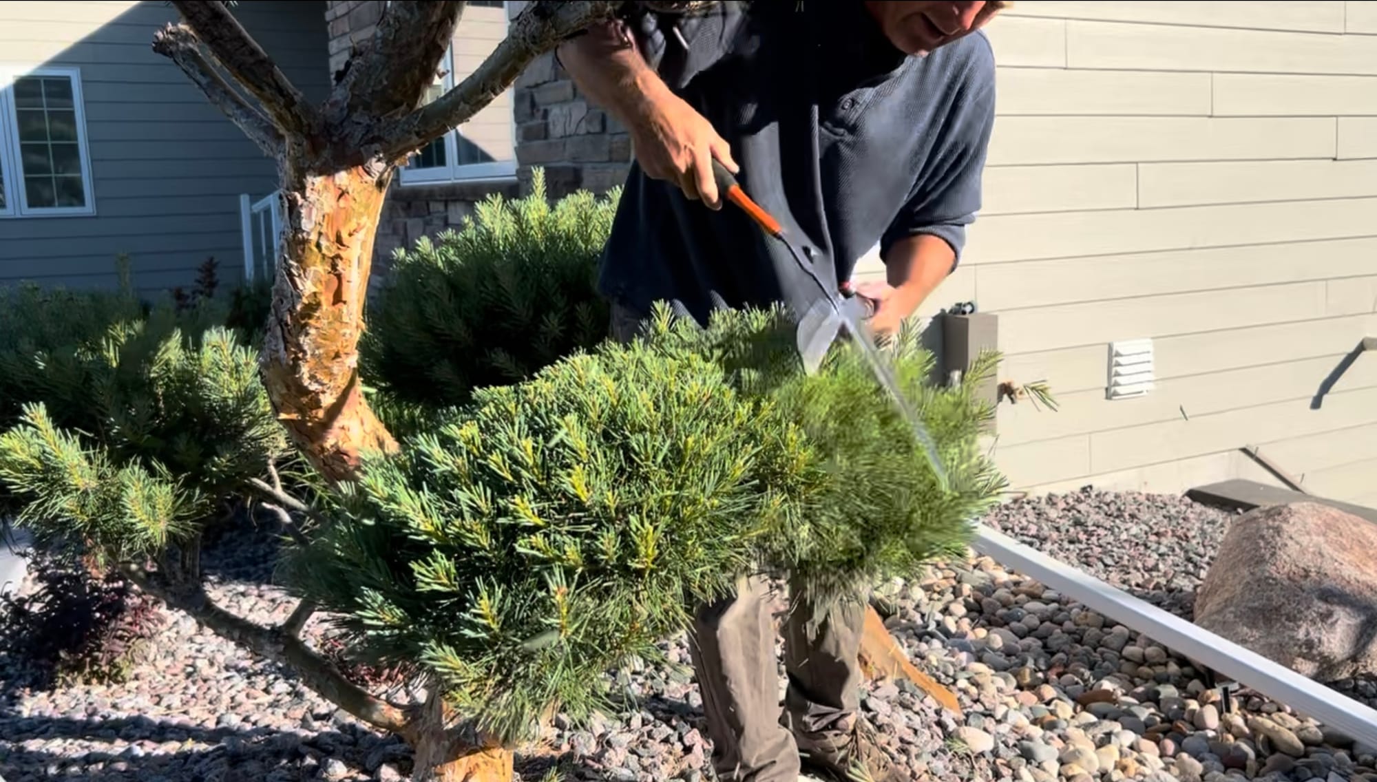 I was never a big fan of evergreen conifers shaped into different balls and spirals. But I must admit, the Bonsai look has grown on me, and I'm starting to like how they can be used in a natural landscape bed as a contrast.