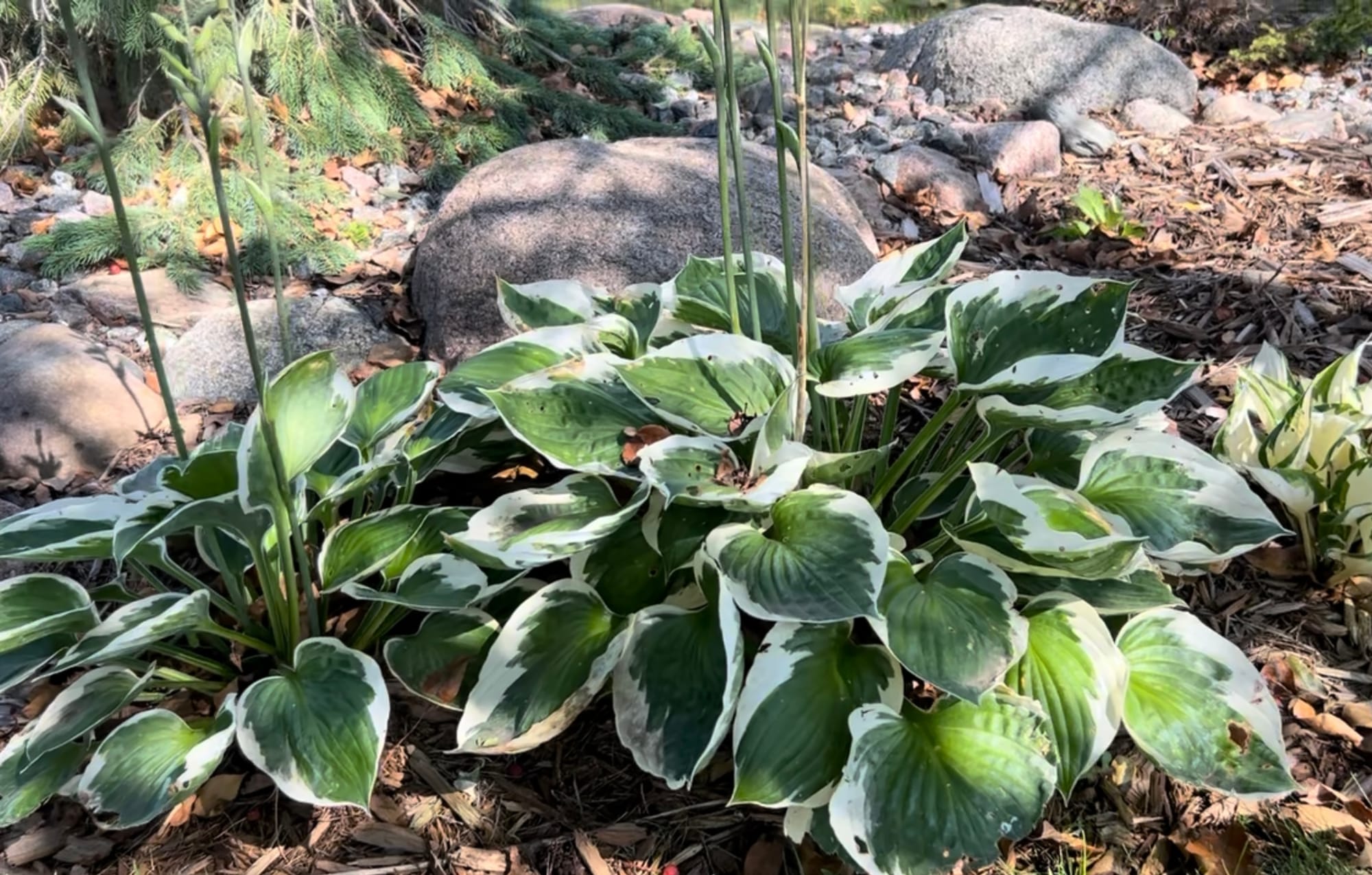 Patriot Hosta is a popular perennial (1997 Hosta of the Year) with dark green leaves and bright white margins. Hostas are widely used in shade gardens, and they are excellent for those areas. But all the hosta varieties I grow get direct sun for part of the day and thrive. Since I don’t have much shade in my landscape (yet, my trees are young), my rule of thumb is to plant them in locations where they are at least shaded during the hottest part of the day. An east exposure works great. Patriot will grow to about 24 inches in height and width. If you like Hostas, here’s a link to a video I made covering dozens of varieties.