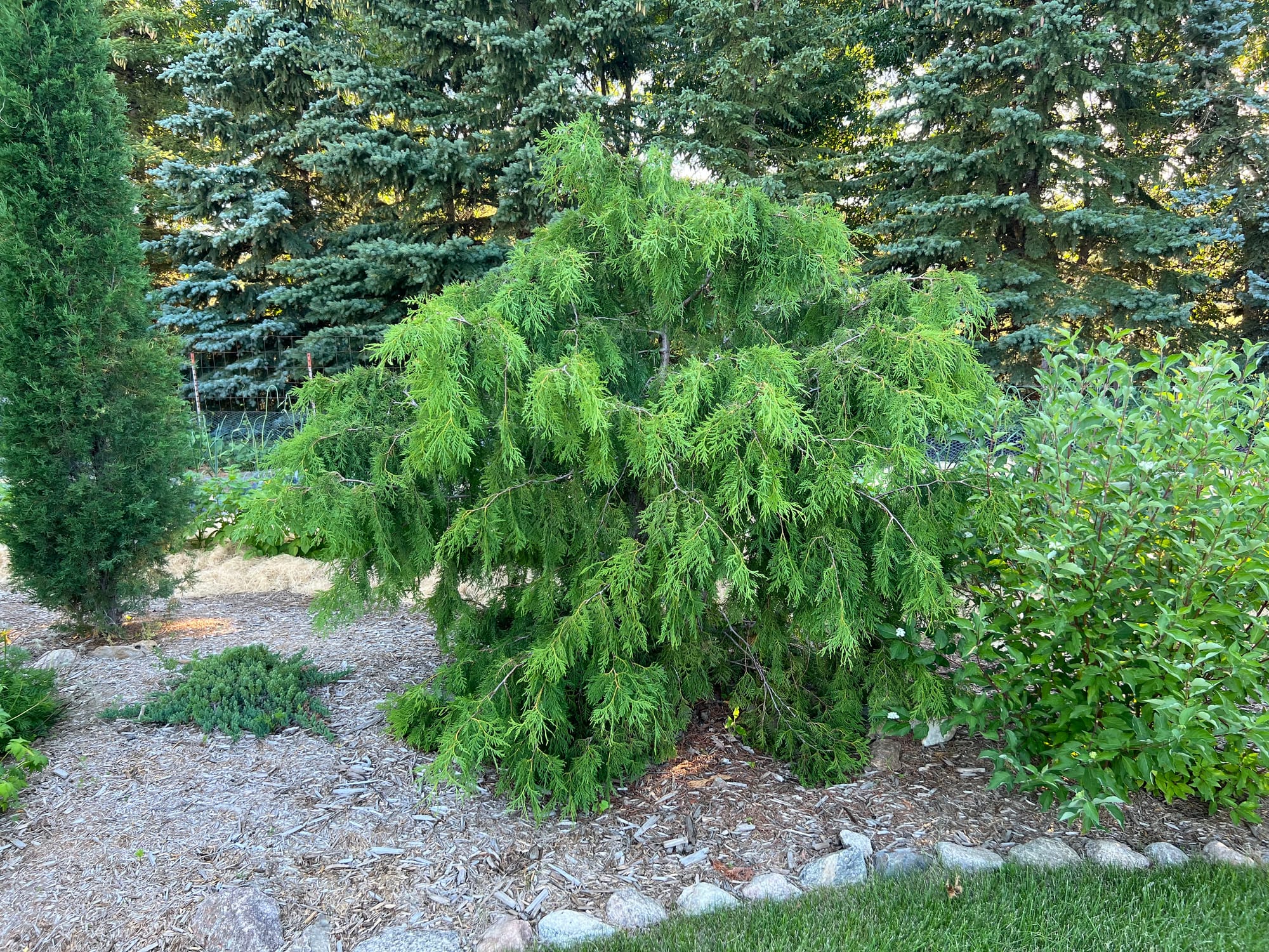 Quebec Weeping Cedar - Thuja Occidental’s ‘Quebec weeping’ (Zone 3) | Aurea Pendula Sawara False Cypress - Chamaecyparis pisifera ‘Aurea Pendula’ (Zone 5) | Russian Cypress - Microbiota decussata (Zone 3)